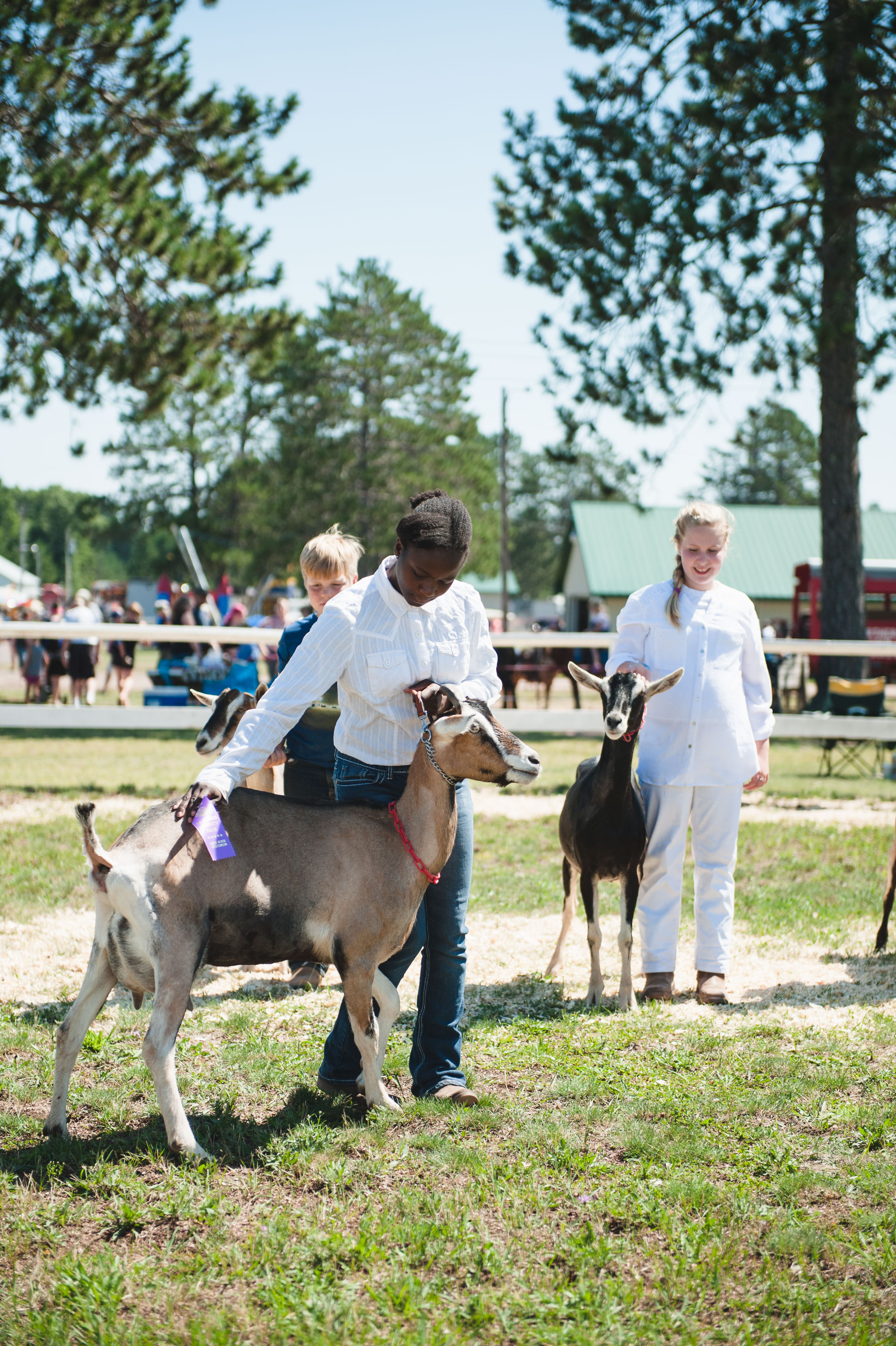 Central to the fair are the 4-Hers and their animals. Cows, pigs, sheep, rabbits, chickens, horses, ponies and goats attend the fair; the exhibitor shows the animal in its respective class, a class appropriate for both the exhibitor and the animal.