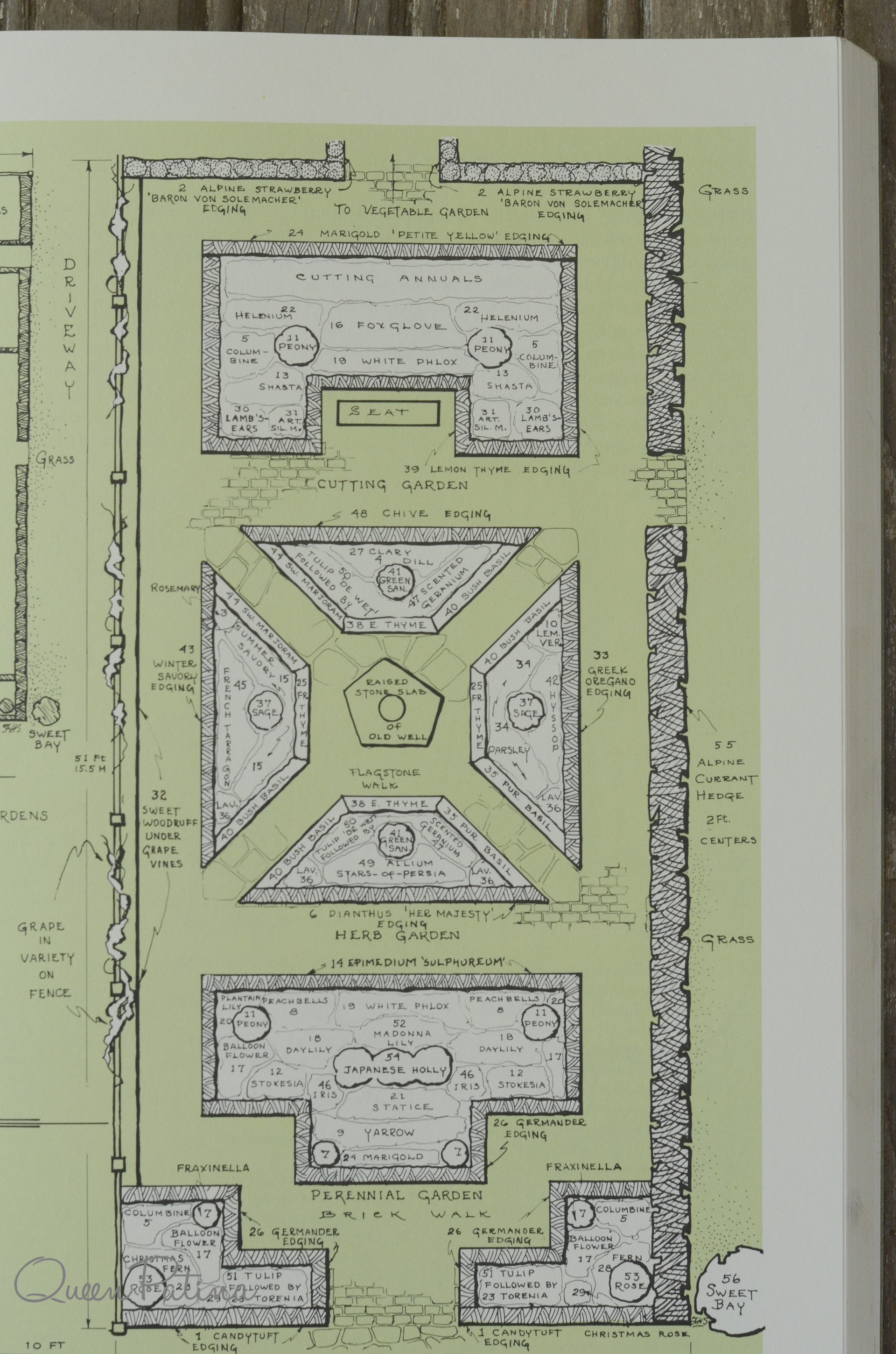 Published in 1984, I guess you could say this text is an oldie but goodie, and like The Heirloom Garden I stumbled upon this book in my favorite quirky bookstore. While the book doesn’t provide much information on the herbs themselves (not surprising given that the text is entitled Herb Garden Design!), the first portion details herb garden design basics and covers plotting out a plan on graph paper, enclosures, and paver layouts—some really interesting and beautiful. The remainder of the text features real herb gardens—not photographically—but the plans themselves, including the plant list and a to scale layout. The authors categorize the plans based on the degree of difficulty and include a series of layouts for the novice, for the more ambitious, and for the super ambitious–other types of herb gardens: a formal Victorian knot garden, a Shakespeare inspired garden, etc.