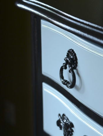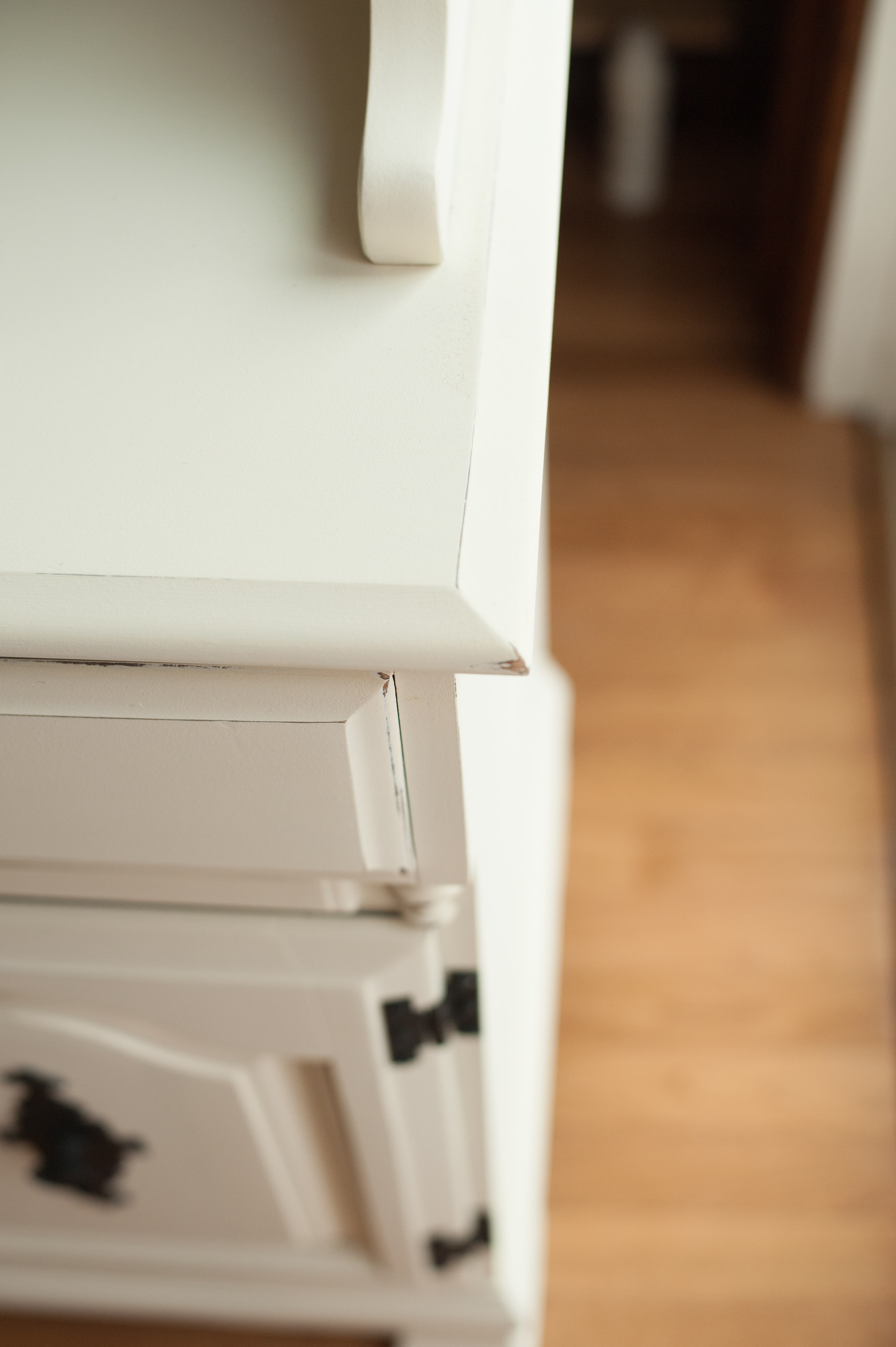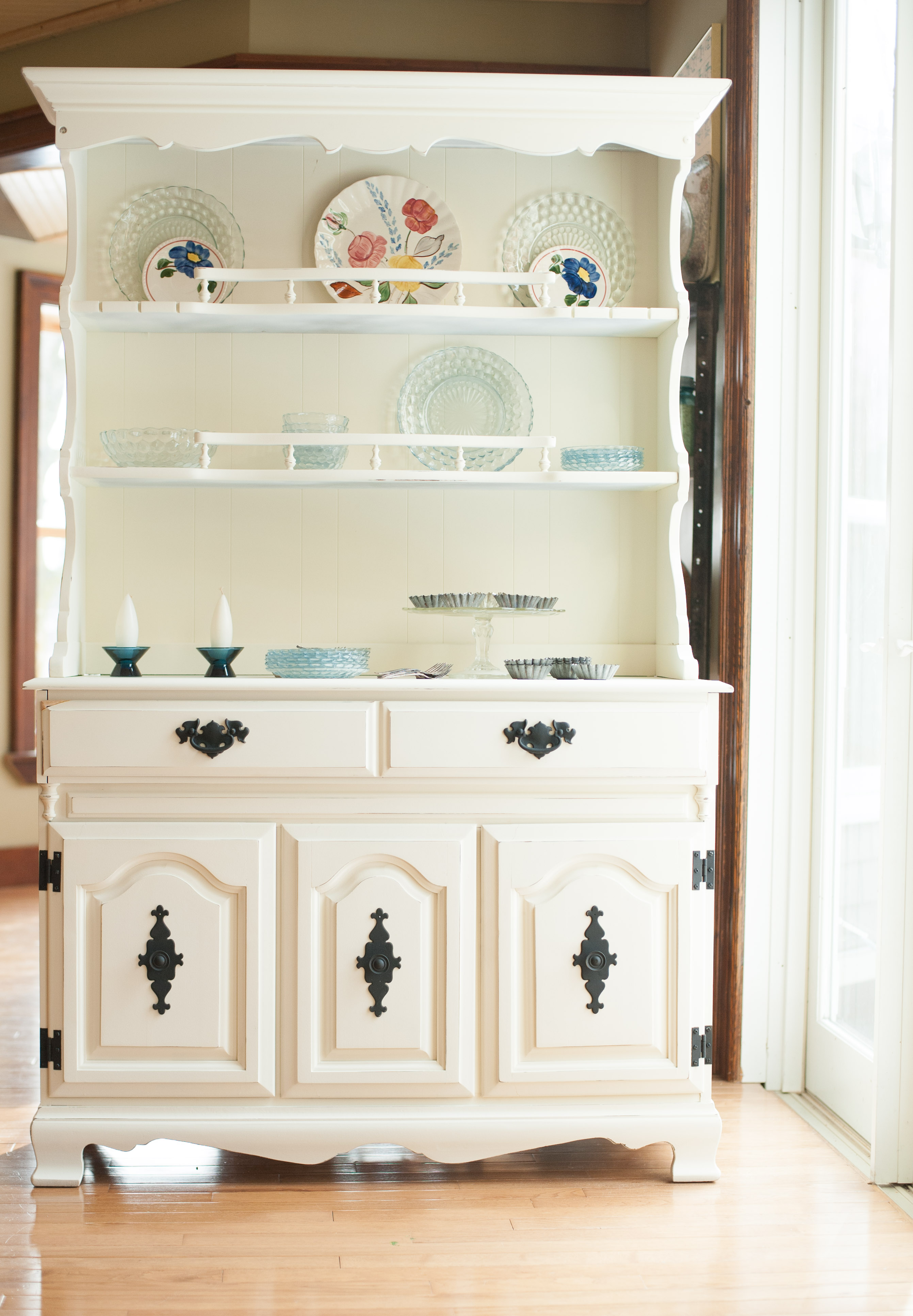 Such a pretty transformation, Rachel! Those maple hutches have such great builds and are perfect candidates for updating! The creamy white has such a nice light feel and the dark hardware pairing is beautiful. Nicely done!