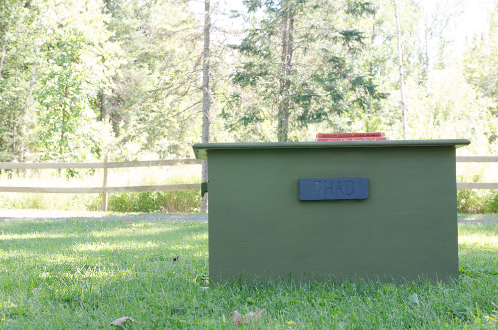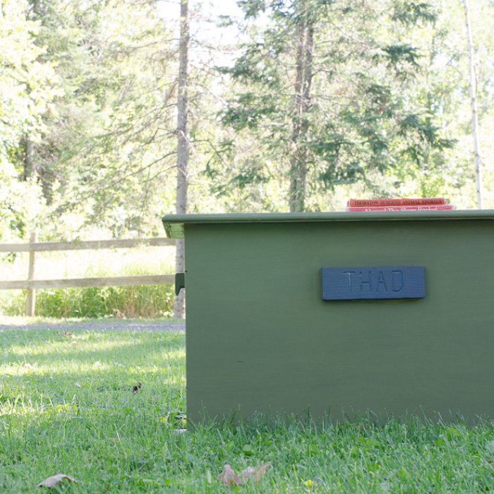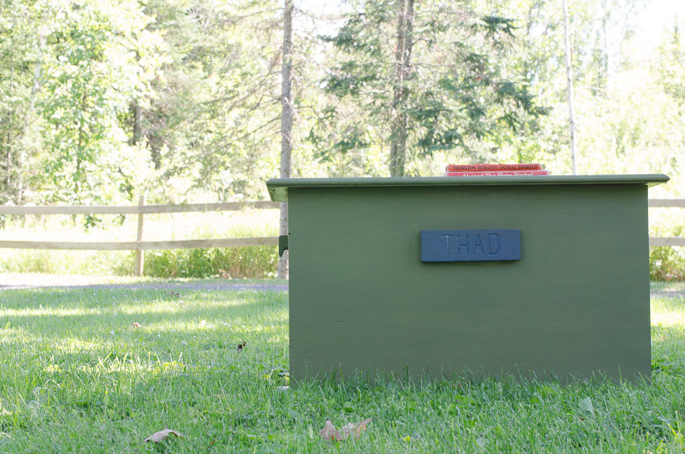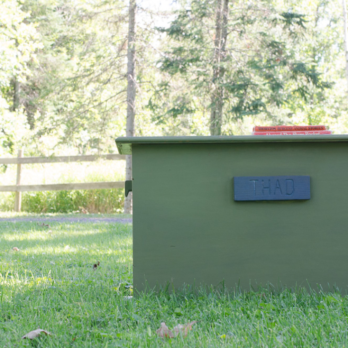 I had leftovers and used the same mix to paint a toy chest that Farm Boy’s grandpa built for him and it’s served as a coffee table, blanket storage, and currently, a toy chest. My kids have used it (read: abused it!) for the last several years to corral dress-up clothes and it was time to give the thing some well-deserved and much-needed attention.