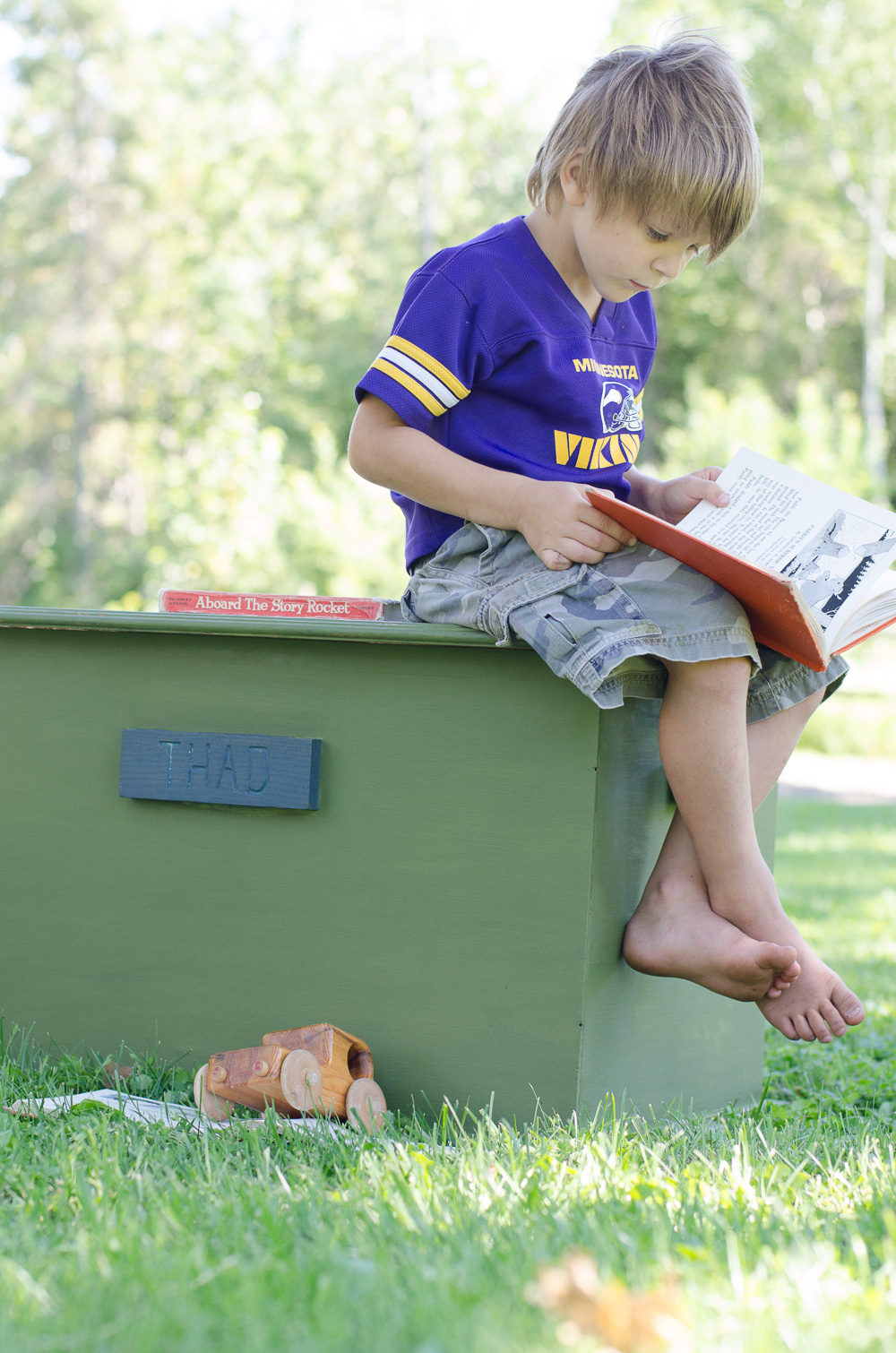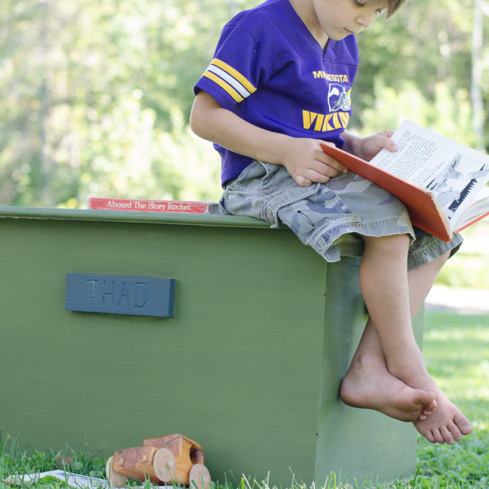 It seemed most appropriate to stage this chest with a kid, (though I often hesitate to put my children on the blog!); he’s a bit rag-tag in the photos given that using him as a prop was not altogether planned (though I promise that he’s well-fed and well-loved!) 😉