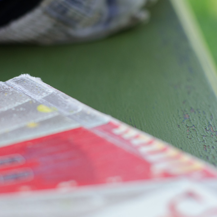 The paint is unique in that it’s entirely VOC free (!), it comes in powdered form (YOU mix the paint with water), and it’s unpredictable: sometimes it chips on a sealed surface and sometimes it doesn’t. Essentially, you get what you get and most of the time, that’s pretty great.