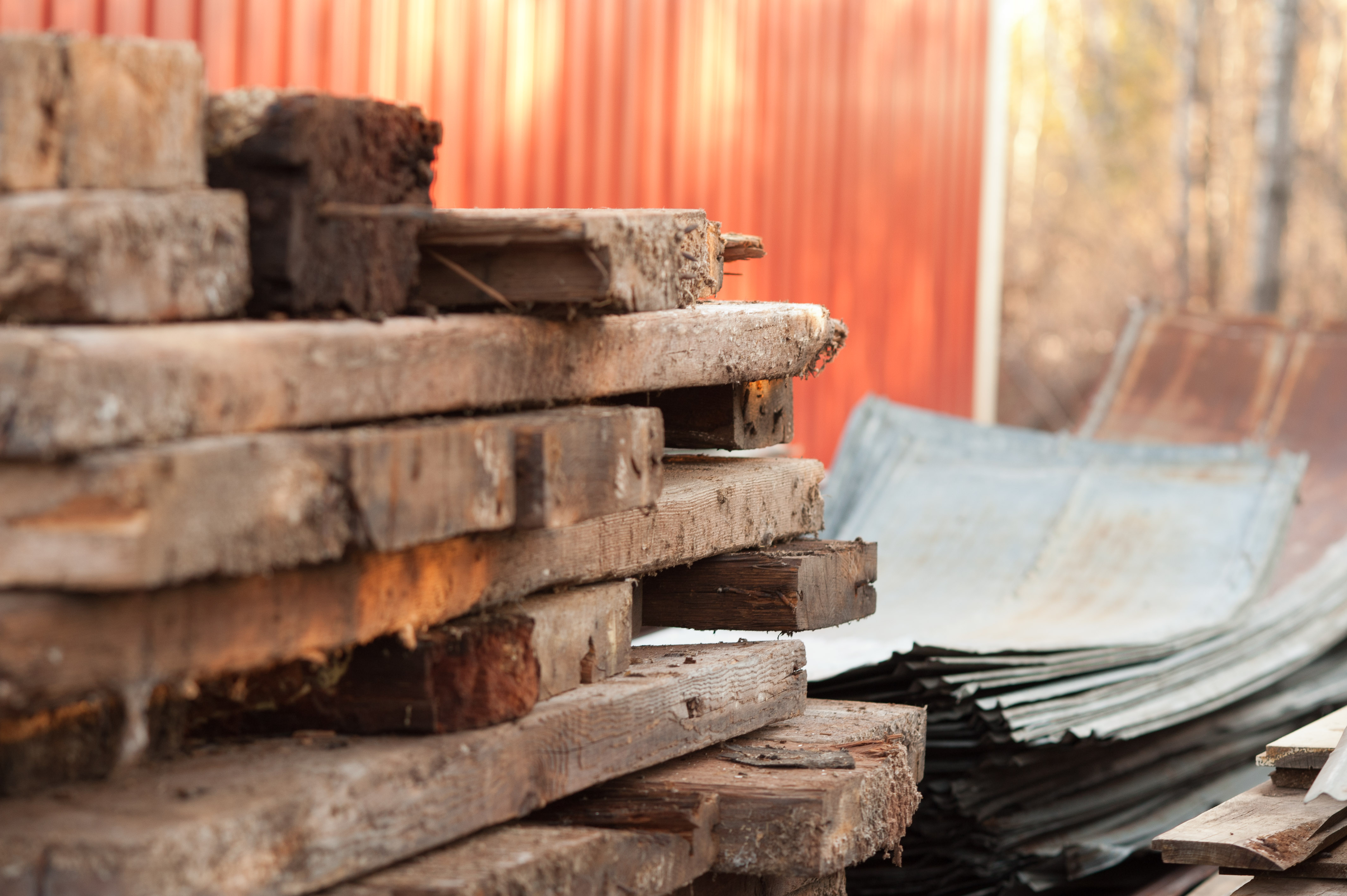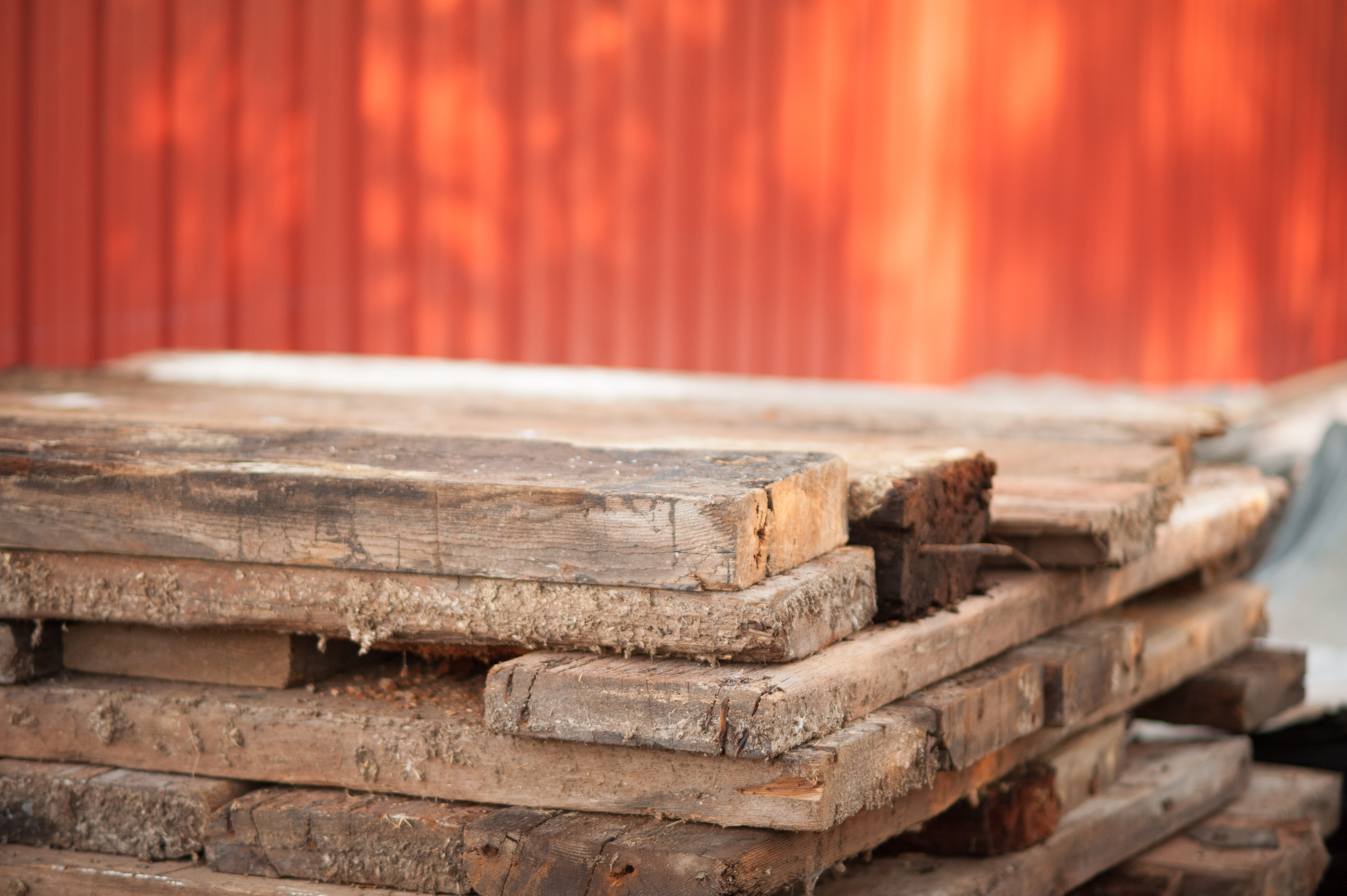 Farm Boy and Troy set up the lift, started up their respective sawzalls and started sawing away at the roof joists. And sawing, sawing, sawing, sawing. The barn didn’t give an inch. They requested two massive hammers, pounded away, and still the barn refused to give way. An hour later after back breaking and painful work, the barn finally released the section of roof they’d been working on. For context, this was a 4’ by 18’ section. The next section—10’ by 18’—took more back-breaking work and more time, leading us to the conclusion that the original plan required some serious revision. We’d also discovered that the #shiplap was something of a lost cause. Mostly rotten, particularly where nails had been and nearly impossible to remove without splintering the board into frustratingly small pieces. And I already mentioned my deplorable efficiency with a wrecking bar.
