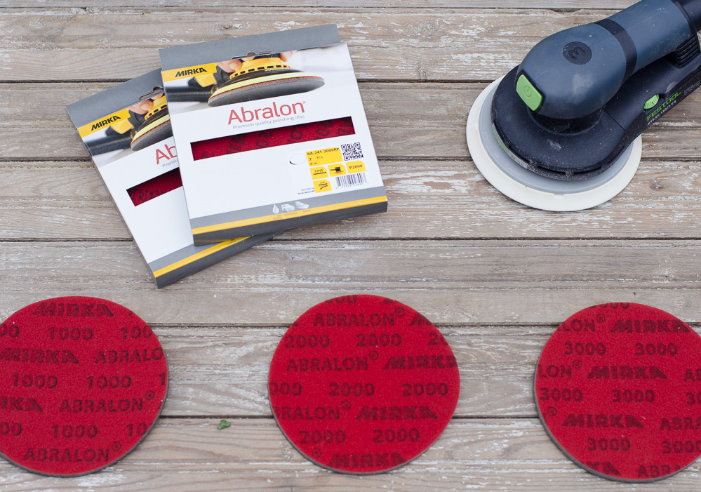 I tried out several models: first the Festool Rotex 125 (a sander and polisher combo) but returned it as it was far too large for my hand. I then waffled between the Ceros and the Deros sanders, both manufactured by Mirka, though I didn’t purchase one given that the company doesn’t have a return policy!