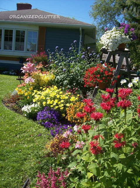 Once you’ve settled on a site, it’s time to determine the shape and placement of the bed(s). In terms of shape, I tend to prefer long, curving, organic lines in my gardens, like this one from Carlene of Organized Clutter.  This garden is a study in composition, plant selection, color combinations, and garden art, etc. Definitely check out her blog post for some gold gardening advice, too.